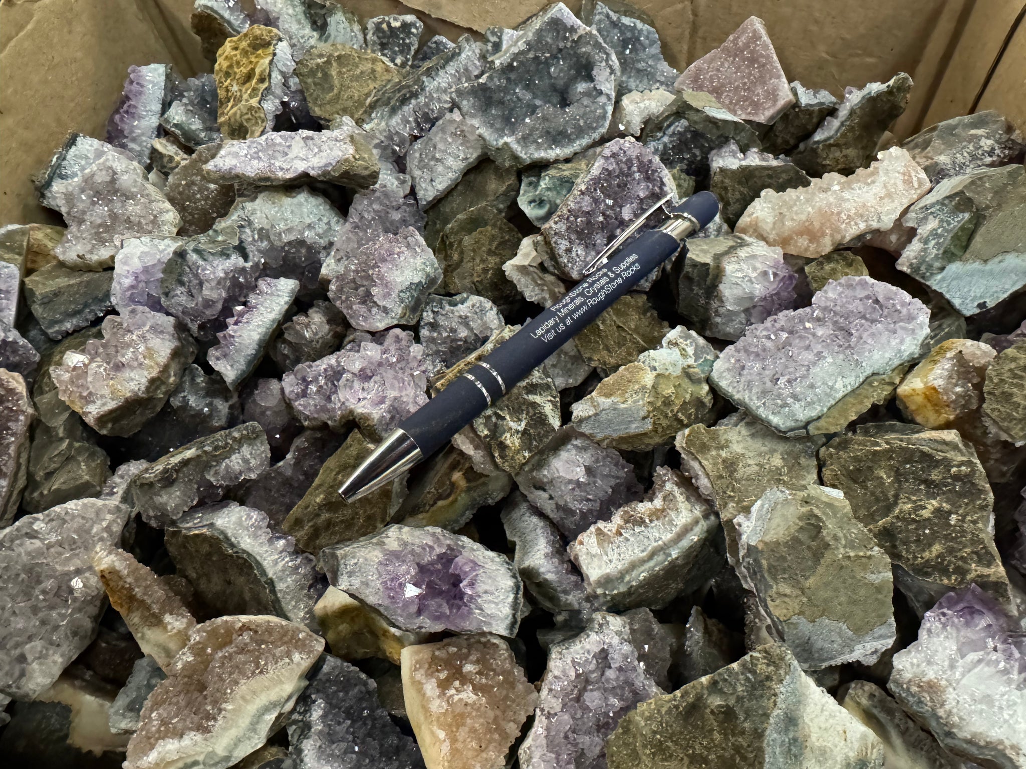 Amethyst crystals on Matrix from Brazil 1 pound Roughstone.Rocks LLC